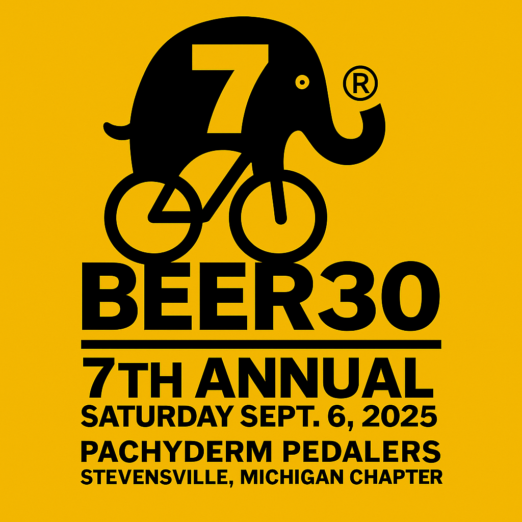 The Beer:30 is an annual cycling event hosted by the Pachyderm Pedalers the first Saturday following Labor Day each year. This year's ride will be Saturday, September 6th. Participants ride 30 miles on country roads and enjoy tasting stops at several craft-beverage makers along the way. Proceeds support Cycle-Re-Cycle and our mission of "Improving lives through bikes, community and cycling"